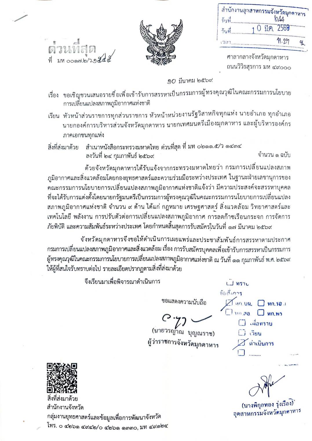 ขอเชิญชวนเสนอรายชื่อเพื่อเข้ารับการสรรหาเป็นกรรมการผู้ทรงคุณในคณะกรรมการนโยบายการเปลี่ยนแปลงสภาพภูมิอากาศแห่งชาติ