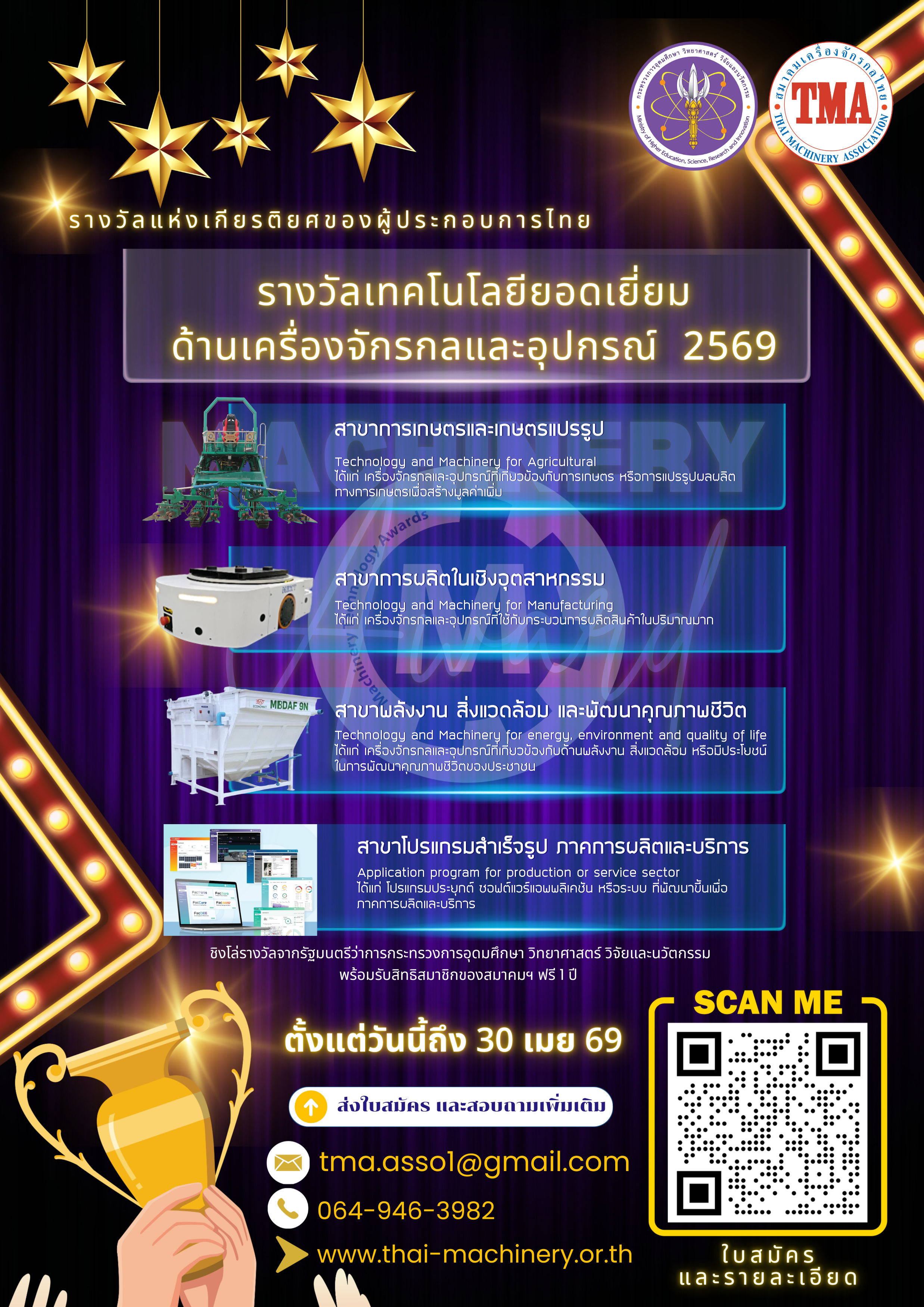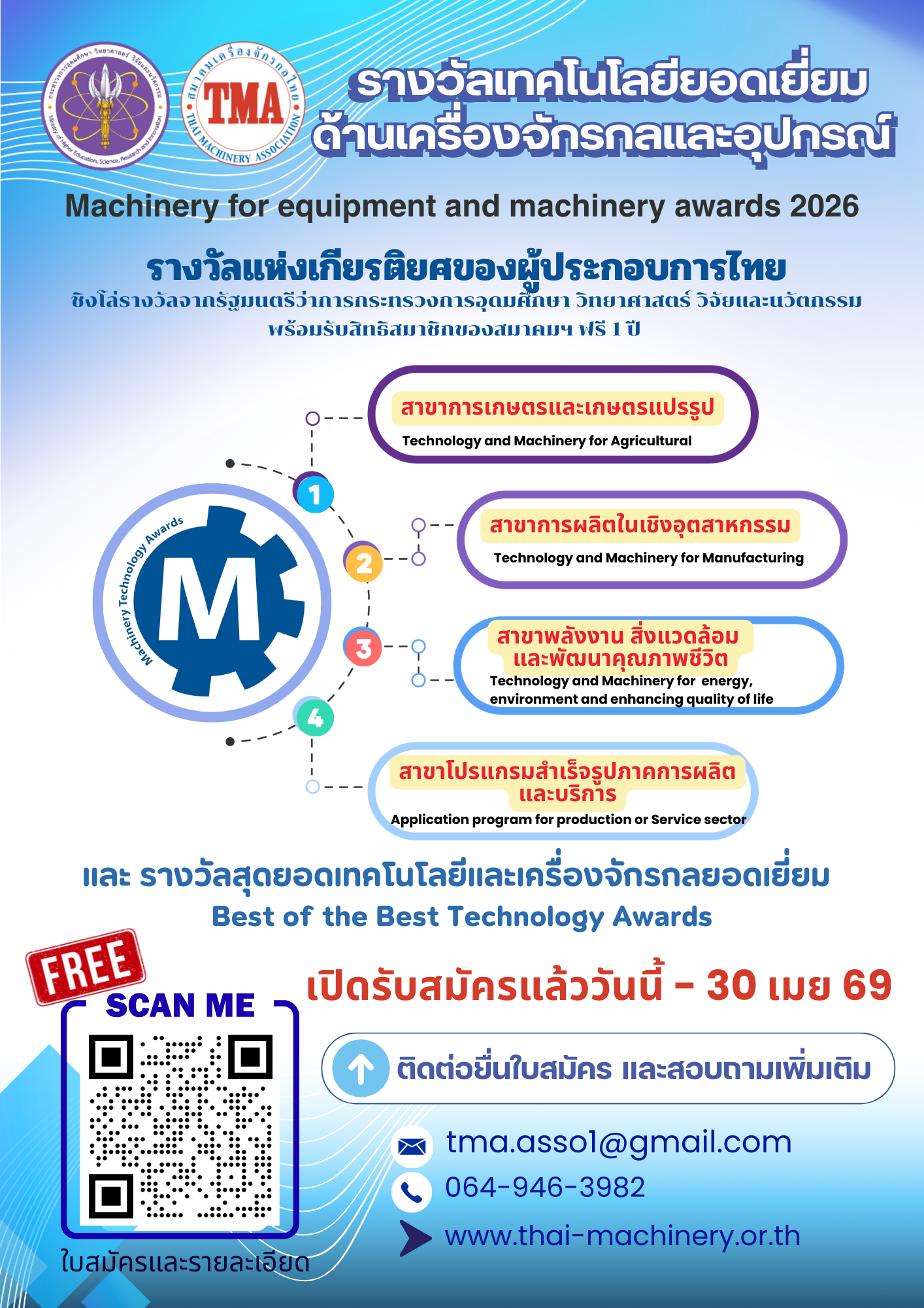 ประชาสัมพันธ์ โครงการประกวดรางวัลเทคโนโลยียอดเยี่ยมด้านเครื่องจักรกลและอุปกรณ์ ประจำปีงบประมาณ พ.ศ. 2569